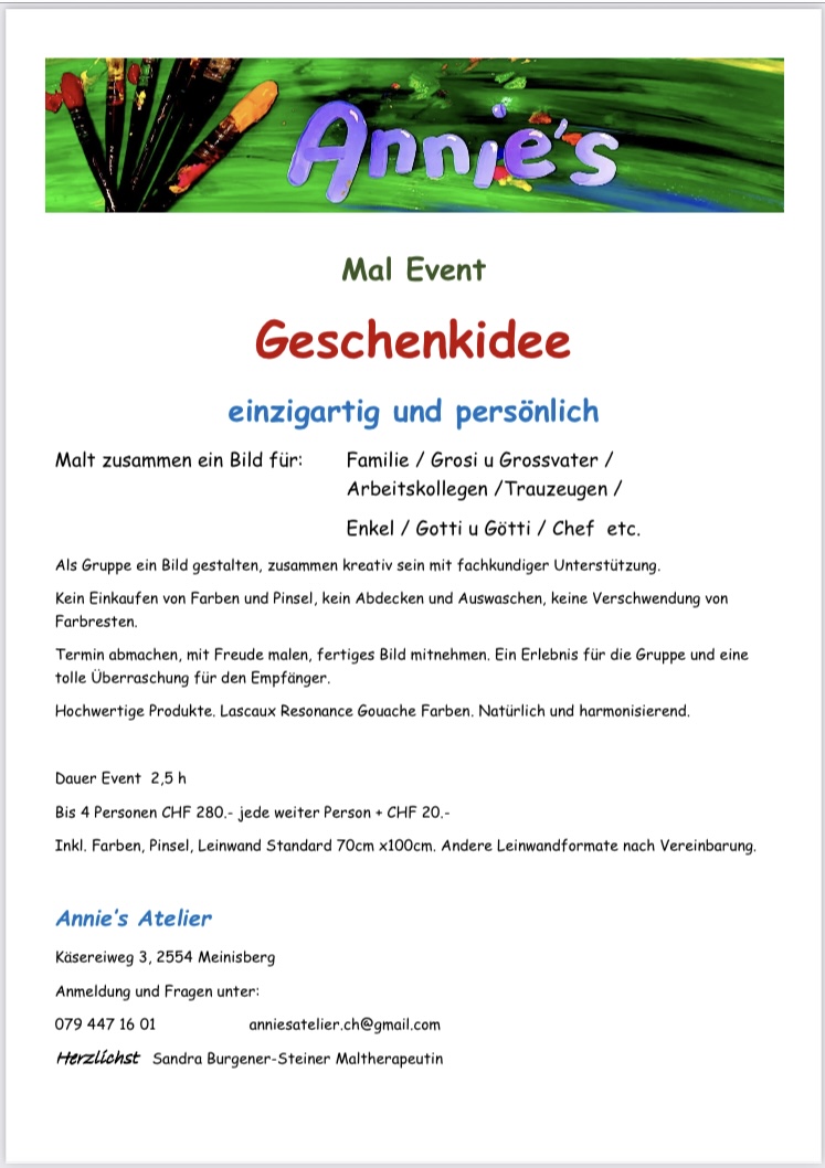 Einzelmalen nach Anfrage 1.5 Std. CHF 120.00 inkl. Material